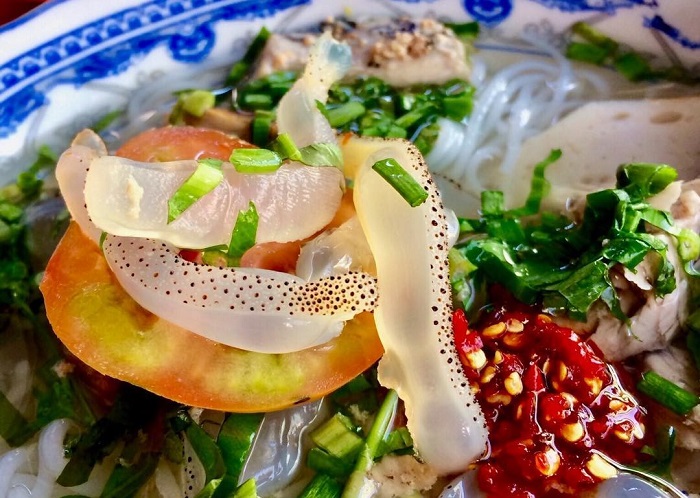 Bún Cá Sứa: Nước dùng thanh tao, miếng sứa trắng trong giòn sần sật.