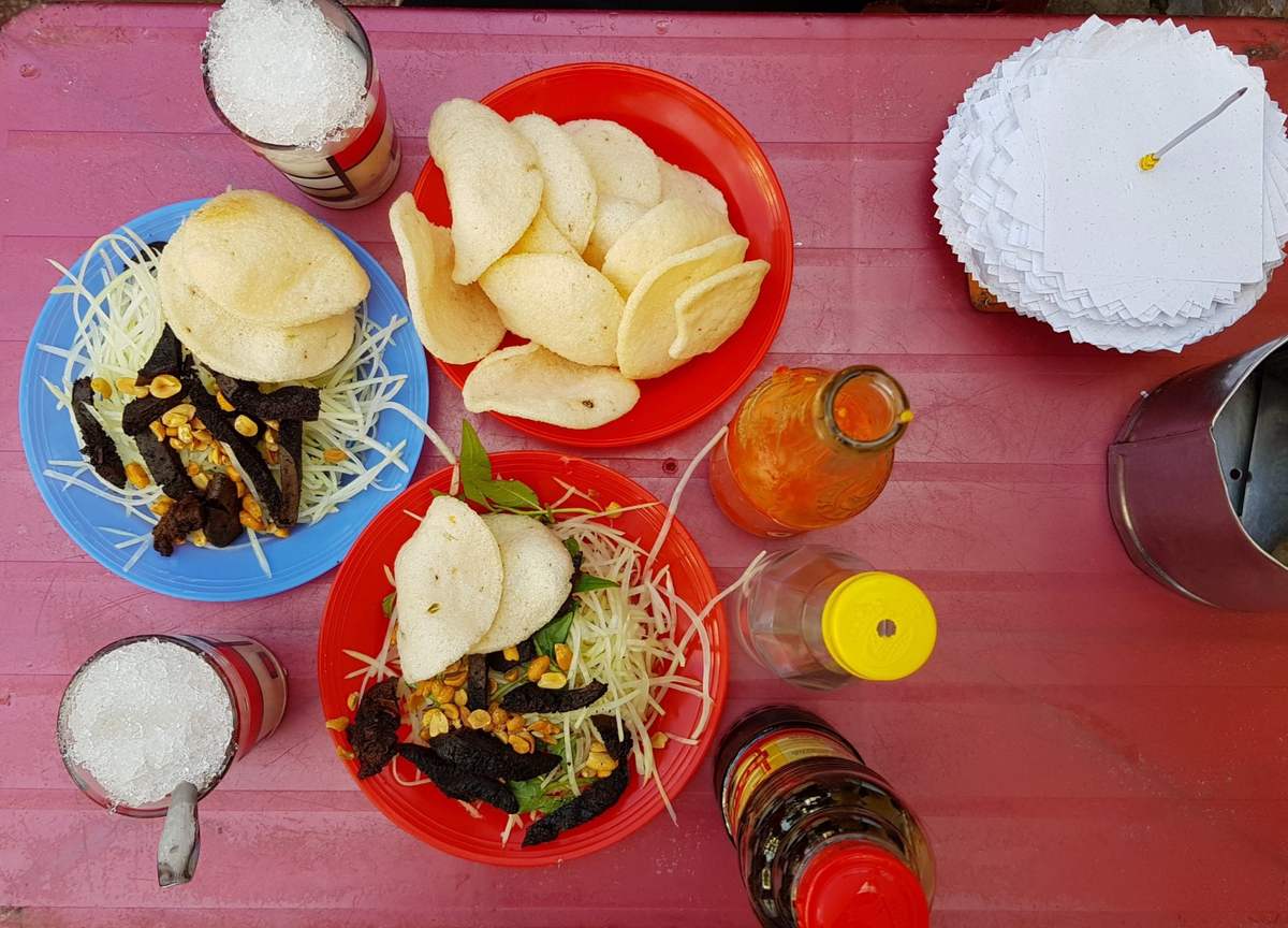 📍 Gỏi khô bò Hưng Thịnh: Ngay ngã ba đường Hàn Thuyên và Lê Thành Phương.