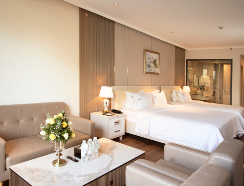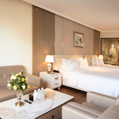 Hạng phòng Deluxe Family rộng rãi cho cả nhà với giá #4250K /đêm. Không gian 5 sao đẳng cấp, yên bình sẽ mang lại những kỷ niệm khó quên cho gia đình bạn.